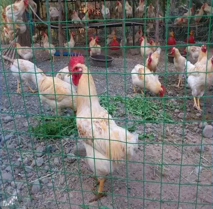 雞鴨鵝飼養場用圈地養殖圍網浸塑荷蘭網又名PVC涂塑荷蘭網是一種外型高大的焊網,上部有保護性尖刺網,網線為鍍鋅鋼絲,加pvc涂塑處理,在保護美觀的同時,保證了堅固與耐用。